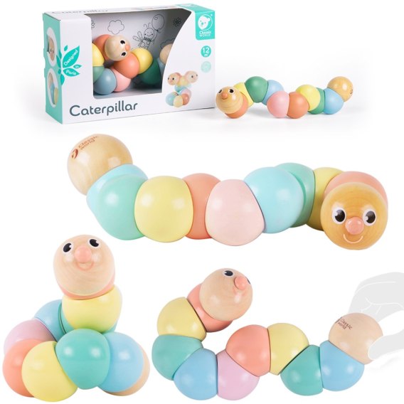Gąsienica marki Classic World to niewielka zabawka, która jest idealnych rozmiarów, by maluszek mógł swobodnie się nią bawić - zginać, skręcać, oraz układać w przeróżnych pozycjach. Gąsienica składa się z kolorowych segmentów, które połączone są ze sobą w taki sposób, by można było ją układać na wszelkie możliwe sposoby. Genialna drewniana zabawka, która wciąga na wiele godzin.