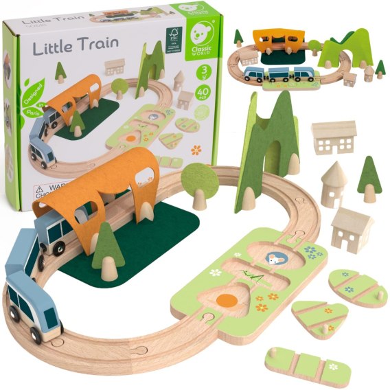 Przygotuj się na fascynującą podróż po świecie wyobraźni z drewnianą kolejką od marki CLASSIC WORLD! Ten wyjątkowy zestaw to nie tylko pięknie wykonany pociąg, ale także tor pełen niespodzianek i roślin. Kolorowe elementy przyciągają uwagę, a naturalne materiały zapewniają bezpieczeństwo podczas zabawy. Idealna zabawka do nauki przez zabawę w duchu Montessori.