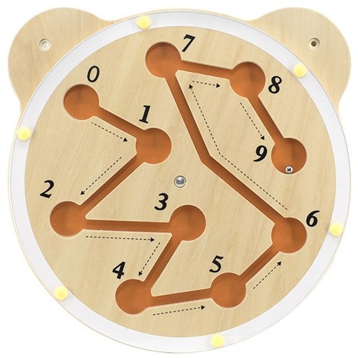 Jedna z serii drewnianych tablic z uroczą głową misia. Tablica dzięki obrotowej tarczy pozwala stalowej kuli na osiągnięcie kolejno każdej cyfry od 0 do 9. Zabawka pomaga w rozwijaniu koordynacji ręka-oko, w nauce liczenia oraz w zdolności rozwiązywania problemów - co ma kluczowe znaczenie w późniejszym życiu każdego młodego człowieka. Produkt idealnie sprawdzi się zarówno w domowym zaciszu, jak i w placówkach oświatowych, wczesnoszkolnych. Ciekawe przygotowanie formy tablicy z pewnością przykuje uwagę każdego malucha. Całość wykonana została z drewna lakierowanego i pomalowana nietoksycznymi farbami w żywe barwy, które zadowolą każdego użytkownika i dadzą mnóstwo radości z zabawy. Produkt przeznaczony dla dzieci od 18 miesiąca życia. W naszej ofercie dostępna jest cała seria tablic z głową misia.